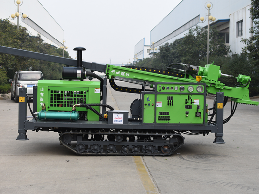 The Julong JY series fully hydraulic core drilling rig is a new type of drilling rig developed by our company based on the advanced technology of similar drilling rigs at home and abroad. Mainly suitable for drilling solid mineral deposits, it can also be used for engineering geology, shallow oil, natural gas, groundwater drilling, as well as engineering drilling for tunnel ventilation, drainage, and dam grouting. The drilling rig adopts full hydraulic drive, and the power head rotation is driven by axial piston pump and inclined shaft piston motor. It has two mechanical gears with stepless speed regulation and advanced structure. The power head adopts a double speed feeding mechanism of oil cylinder chain, which moves smoothly and reliably. It is equipped with a lateral translation mechanism of the power head. The mast can slide as a whole when lifted and lowered by an oil cylinder, and can drill holes within a range of 45-90 ° during construction. The hydraulic system adopts load sensitive control, which has high work efficiency and high torque. The drilling rig is equipped with hydraulic horse clamps, hydraulic leveling support legs, extendable mast and other devices, which facilitate the quick positioning of the drilling rig. Configure wireless remote control tracks, suitable for various terrains, to control the crawling of the drilling rig within a safe distance and prevent sudden danger.